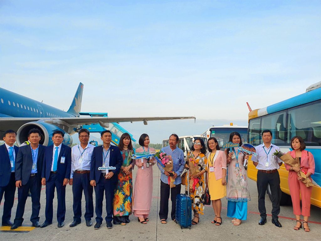 A warm greeting for the first flight and cruise passengers arriving to Danang in 2026, held across: