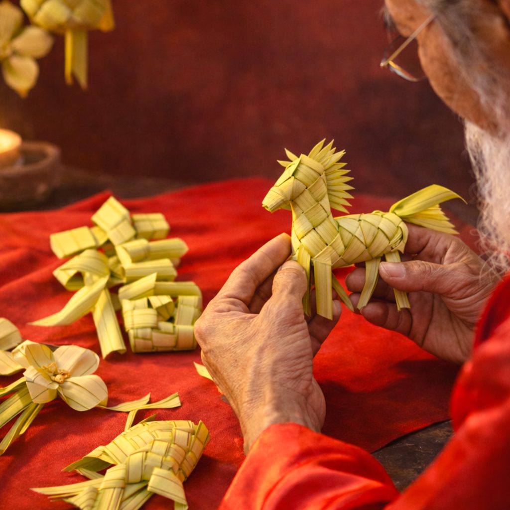 Tet unfolds gently at Courtyard by Marriott Danang Han River, like a soft spring melody echoing along the Han River. The celebration begins with the timeless art of calligraphy, where graceful brushstrokes convey wishes of peace, prosperity, and renewal. Laughter fills the space as children delight in vibrant tò he figurines, while the quiet artistry of pandan leaf weaving reveals the enduring beauty of Asian craftsmanship.