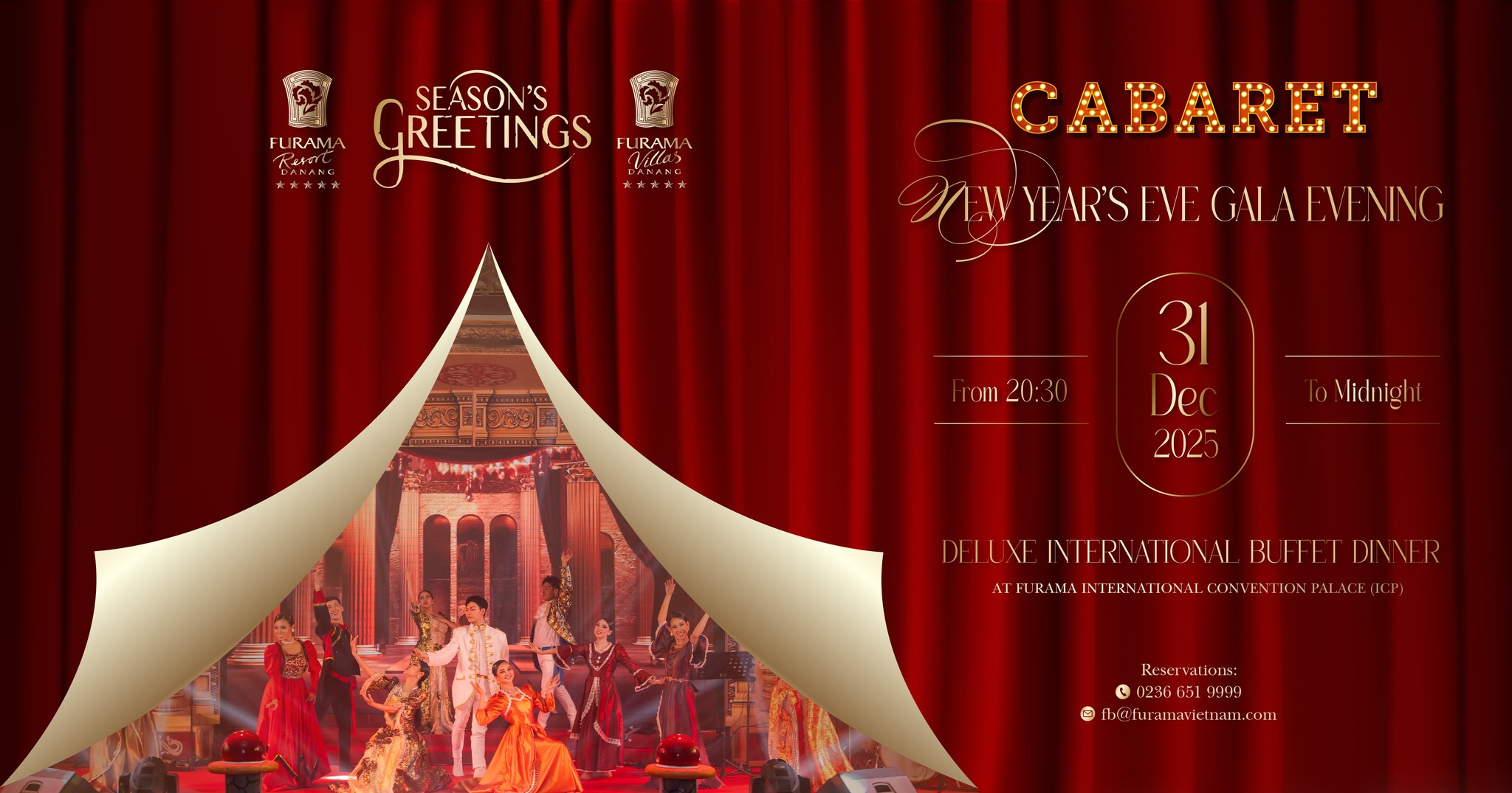 This New Year’s Eve, step into a world of velvet-red glamour, champagne sparkle, and cabaret artistry at Furama Resort Danang. Prepare for a night where luxury meets theatrical magic – the Cabaret Mystique Night, held inside the grand International Convention Palace.