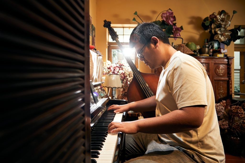 HAT Jazz is a family of three: Nguyễn Anh Tú, a professional contrabass artist; Hà Anh Thu, the band’s vocalist; and their son, Nguyễn Hà Anh Dũng, a young pianist growing up immersed in jazz from an early age. Together, they form a unit artistically and personally where music is created, practiced, and lived every day.