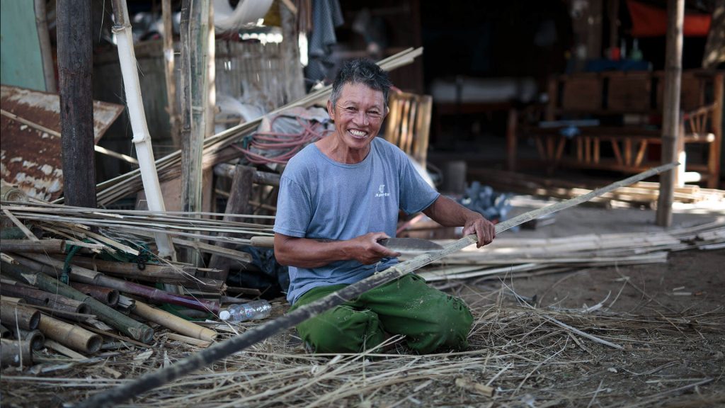 Building such a home requires not only technical skill but also deep understanding of structure, scale, and proportion. Craftsmen carefully select aged bamboo for strength and balance, while nipa palm leaves meticulously dried, soaked, and woven are used for roofing and wall panels. When treated through prolonged immersion in water and mud, these natural materials become remarkably resistant to insects and humidity, ensuring the homes remain cool, dry, and enduring.